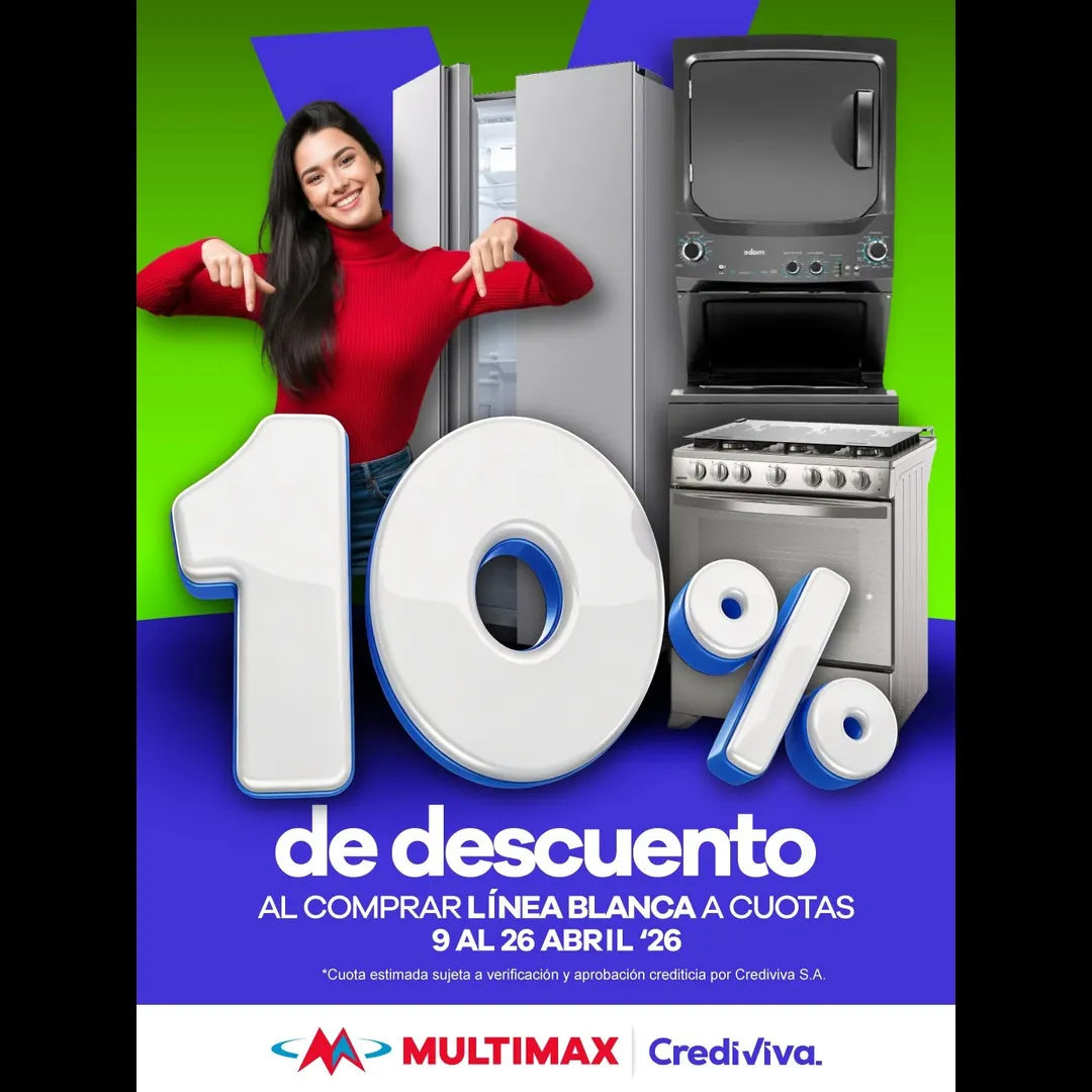 En Multimax, equipar tu casa es más fácil. Disfruta de un 10% de descuento exclusivo al realizar tu compra a cuotas con Crediviva. 🧺🥘