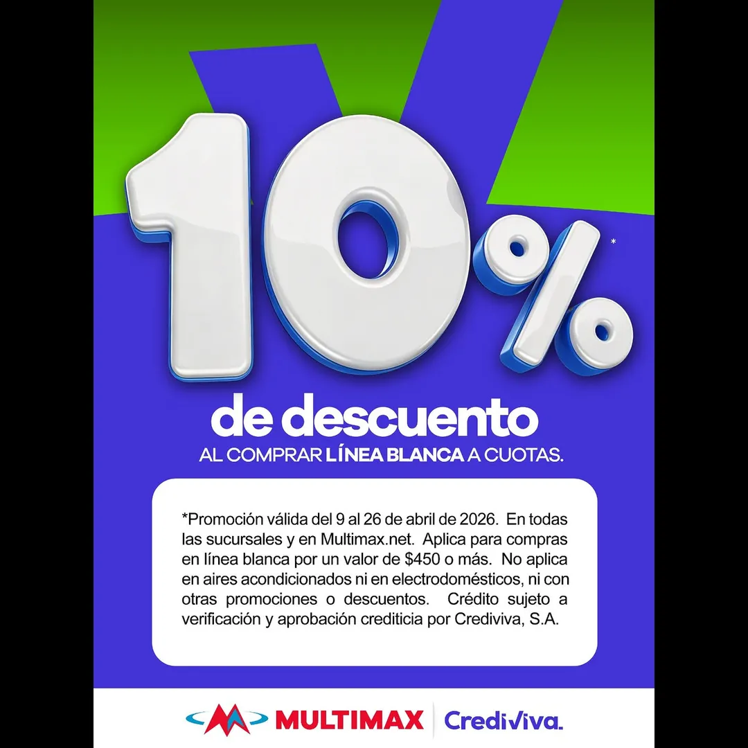 aprovechar las ofertas del Décimo en Multimax! Ven y anota en grande llevándote tu línea blanca favortia con 10% de descuento comprando a cuotas.