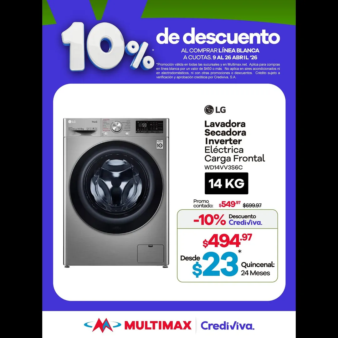 aprovechar las ofertas del Décimo en Multimax! Ven y anota en grande llevándote tu línea blanca favortia con 10% de descuento comprando a cuotas.