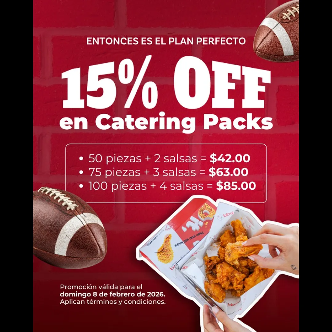 En bb.q Chicken nos encargamos de que tu celebración sea de otro nivel con nuestros Catering Packs y un 15% de descuento para que no falte nada en la mesa 🔥