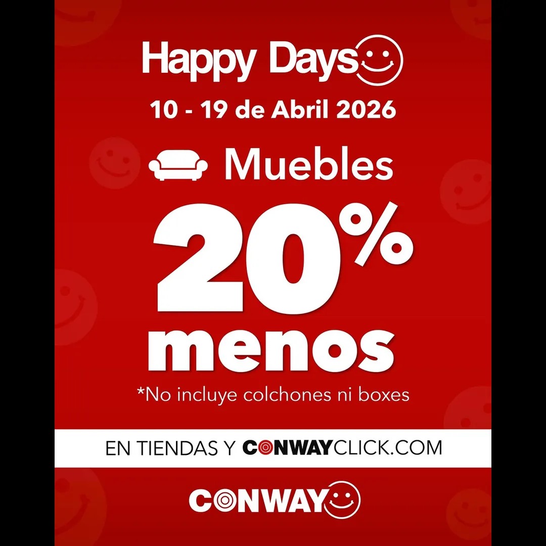 Ofertas válidas del 10.04.26 al 19.04.26. Aplica en tiendas y conwayclick.com. No aplica en farmacia ni cafetería. No acumulable con otras promociones. Cashback equivalente al 10% del total antes de ITBMS. Para redimir, presentar cupón original.