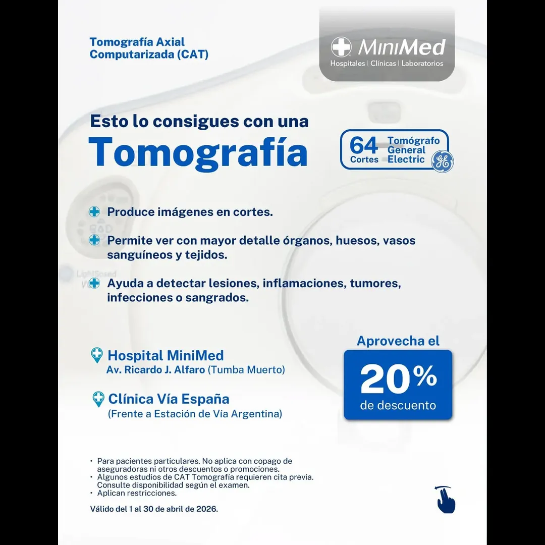 🌟 Aprovecha nuestro 20% de descuento en estudios de tomografía.