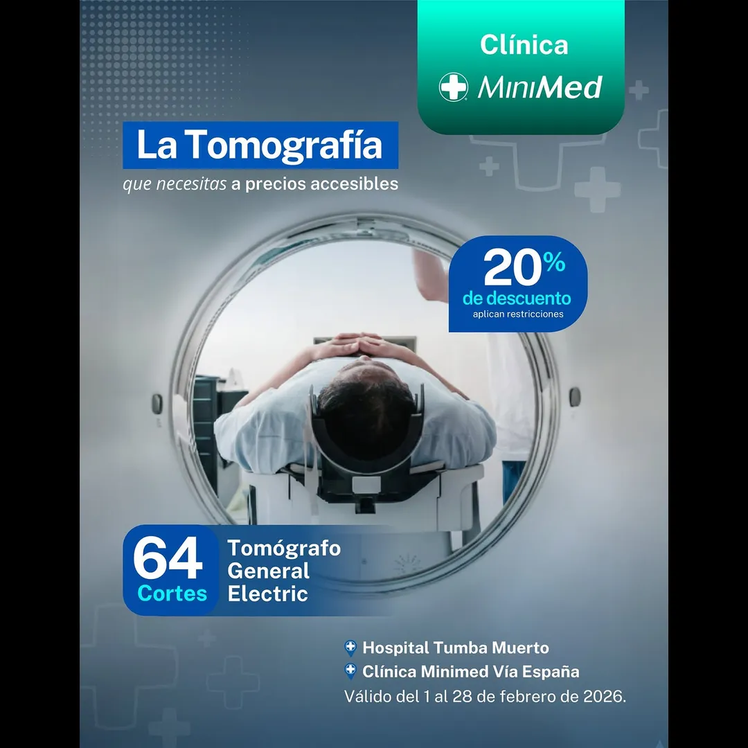 En MiniMed ponemos a su disposición Tomografía CAT con tecnología de 64 cortes, a 20% de descuento. ✨