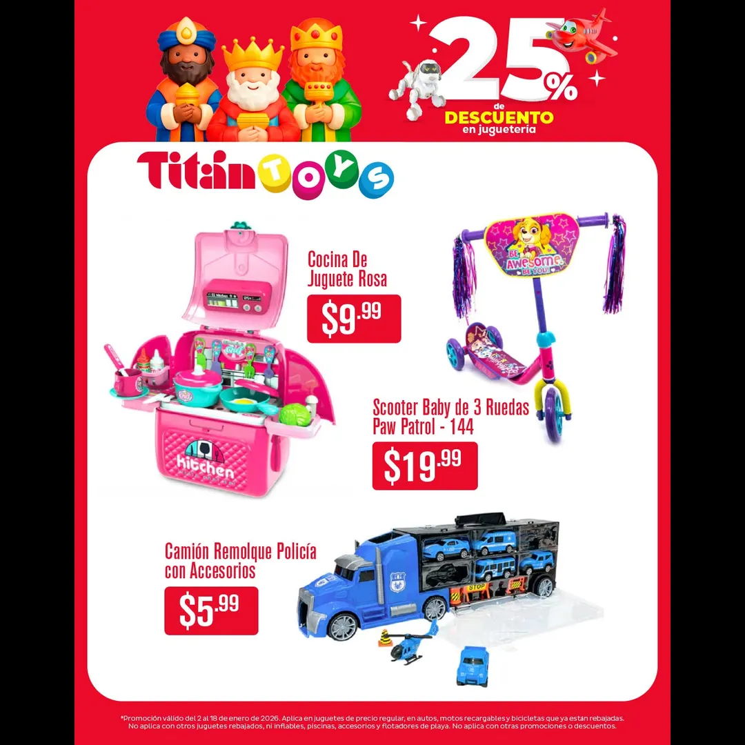 *Promoción válida del 2 al 18 de enero de 2026. Aplica en juguetes de precio regular, en autos y motos recargables, y bicicletas rebajadas. No aplica con otros juguetes rebajados, inflables, piscinas, accesorios ni flotadores de playa. No aplica con otras promociones o descuentos.