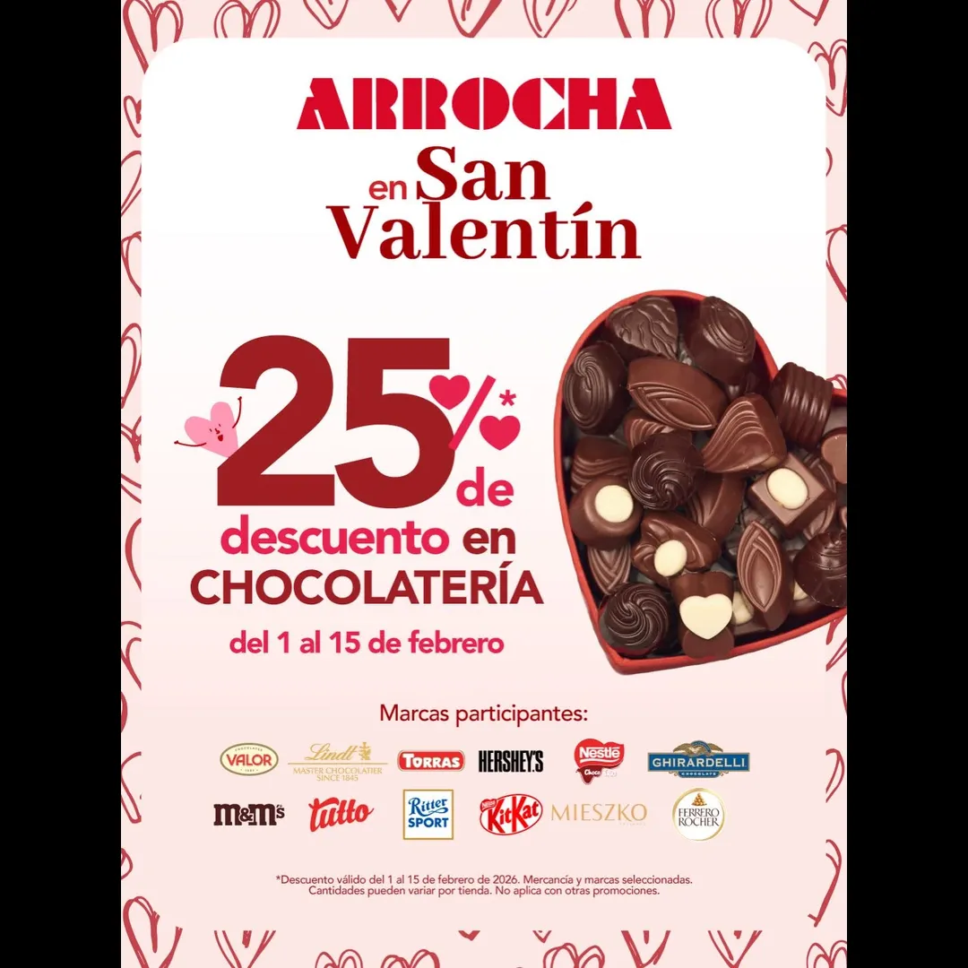 Disfruta de un 25% menos en productos seleccionados de chocolatería para celebrar el amor y la amistad. ❤️✨¡Visítanos en tu sucursal favorita!✨