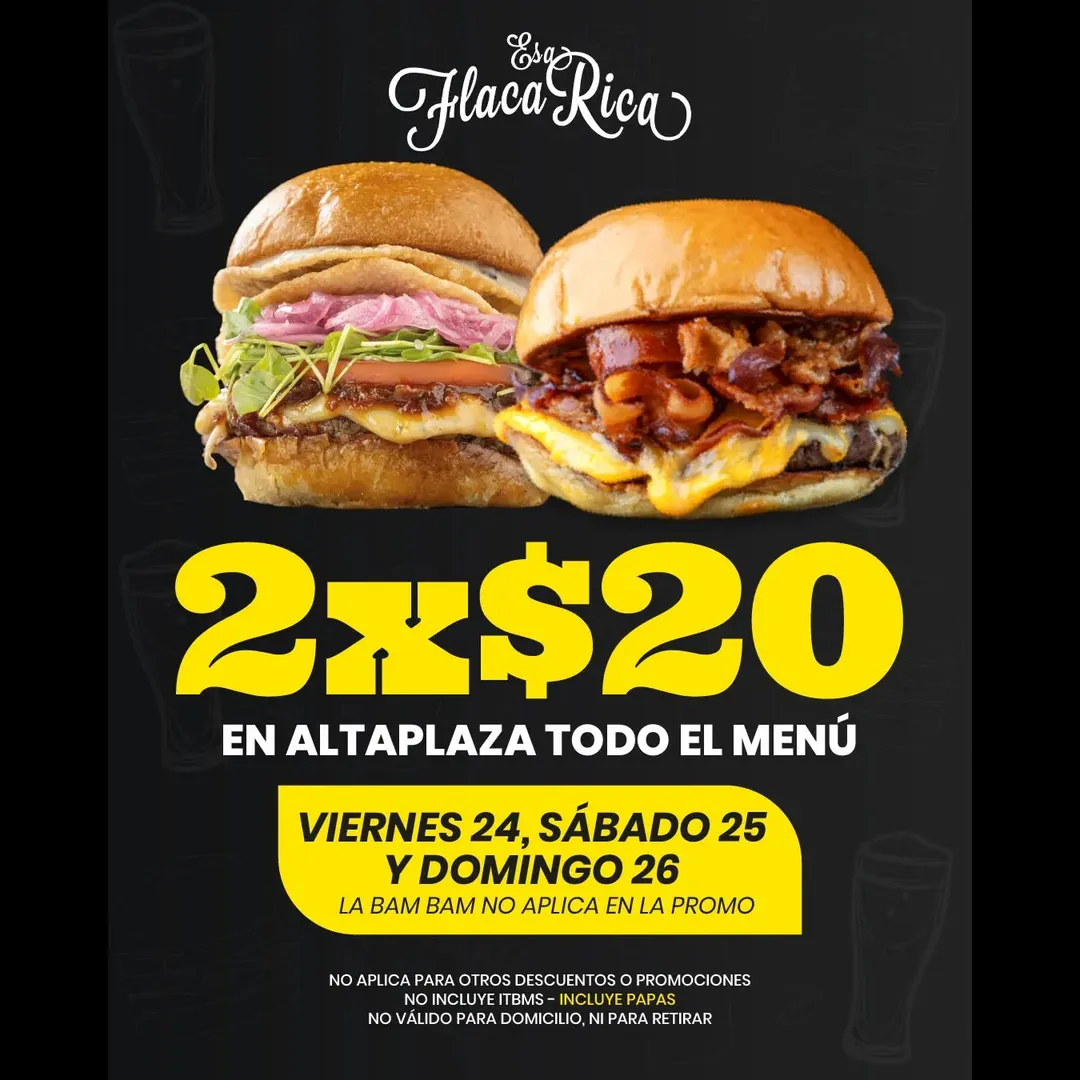 🍔 ¡En Altaplaza 2x$20 en Esa Flaca Rica! 🤤🍟