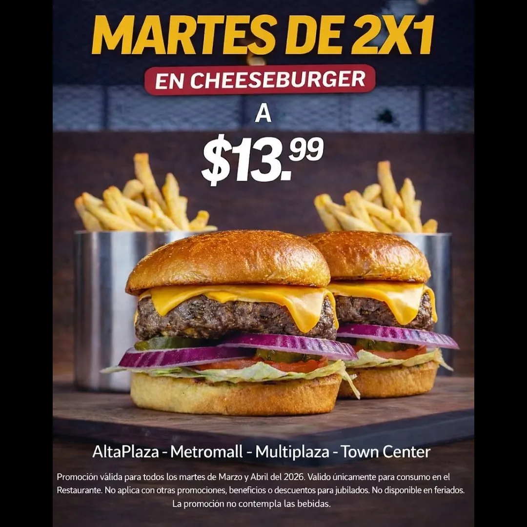 1 Promo – Cheeseburger GRATIS en uno de nuestras sucursales. Tú eliges!