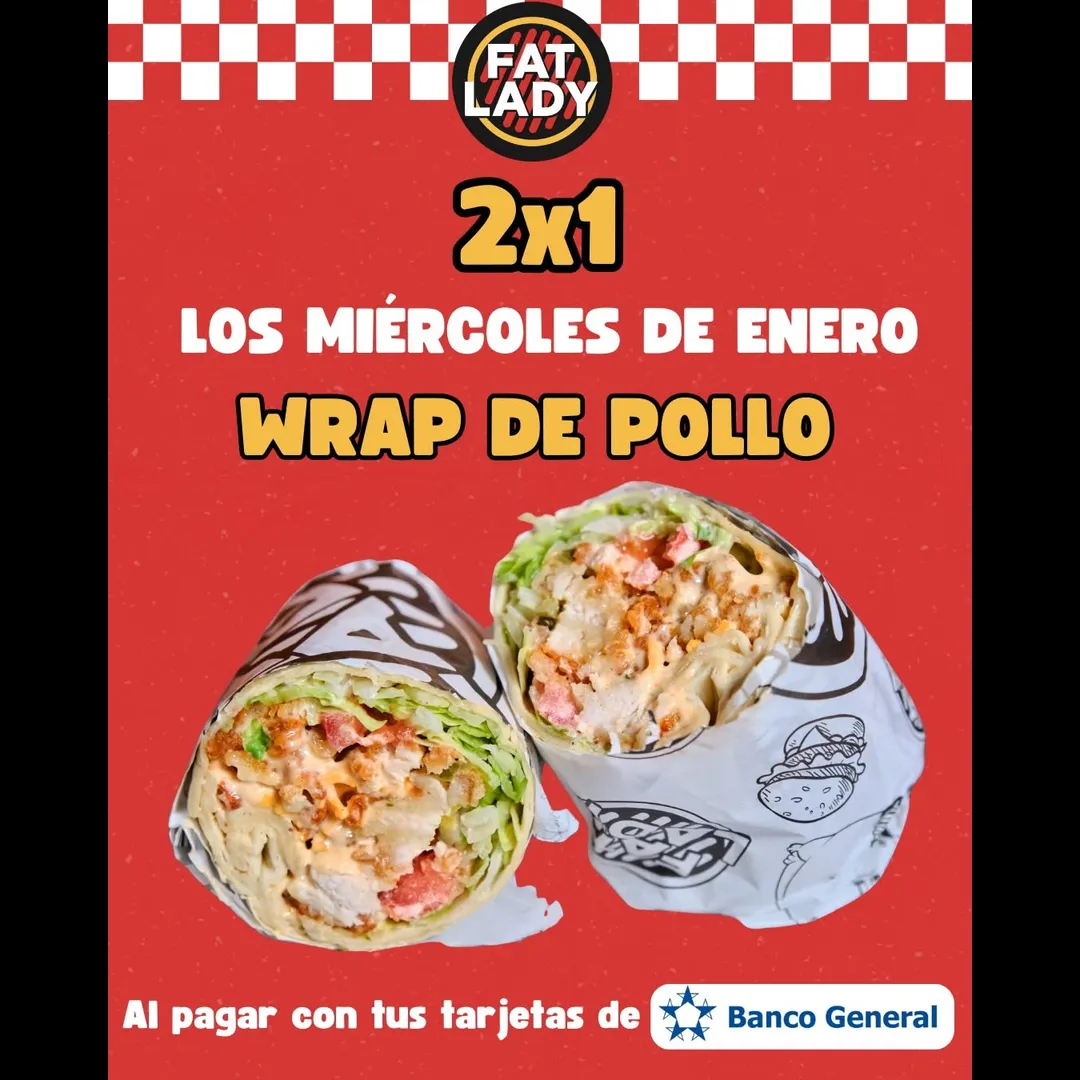 2×1 en WRAP DE POLLO🌯 los miércoles de enero con @bancogeneral 🙌 Comienza el año de la mejor manera y ven a disfrutar tu promo, te esperamos!!🤩