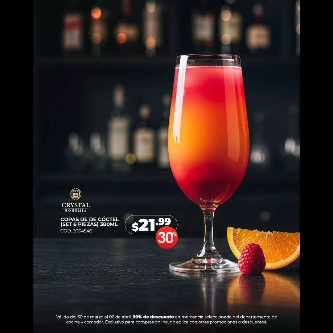Promoción válida del 30 de marzo al 06 de abril. Aplica en mercancía seleccionada de cocina y comedor. Exclusivo en compras online. No aplica con otras promociones o descuentos.