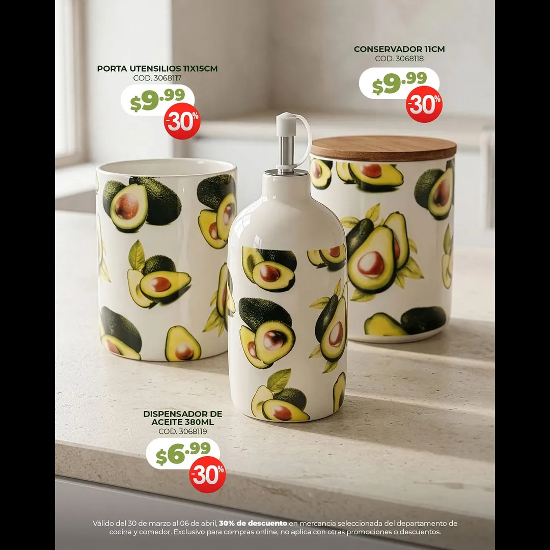Promoción válida del 30 de marzo al 06 de abril. Aplica en mercancía seleccionada de cocina y comedor. Exclusivo en compras online. No aplica con otras promociones o descuentos.