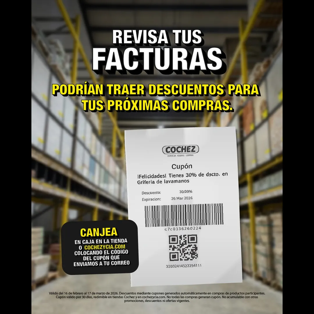 Canjéalos en tienda o en cochezycia.com con el código que enviamos a tu correo y sigue ahorrando en grande, porque Cochez pone los descuentos en tus manos. ✨