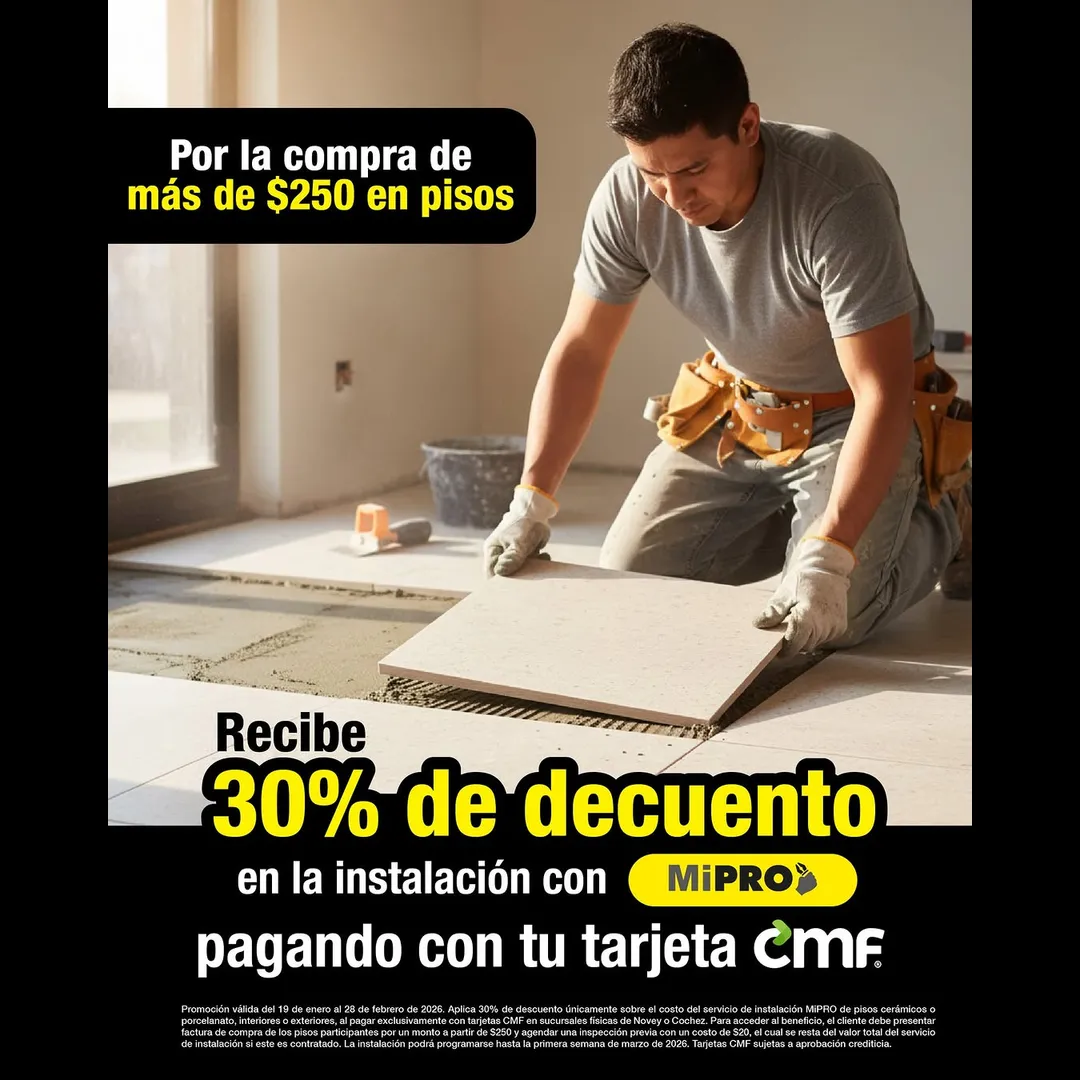 ¡Remodela HOY! 💥 Aprovecha estos descuentos por tiempo limitado. ¿Lo mejor? Si pagas con tu tarjeta CMF te lo llevas sin abono inicial y hasta en 36 cuotas mensuales.