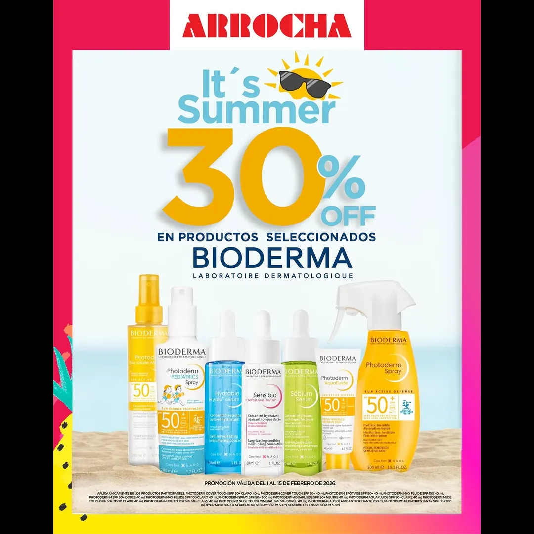 ☀️ Disfruta del sol con la mejor protección. Aprovecha un 30% de descuento en productos seleccionados de Bioderma para que tu única preocupación sea pasarla bien😎