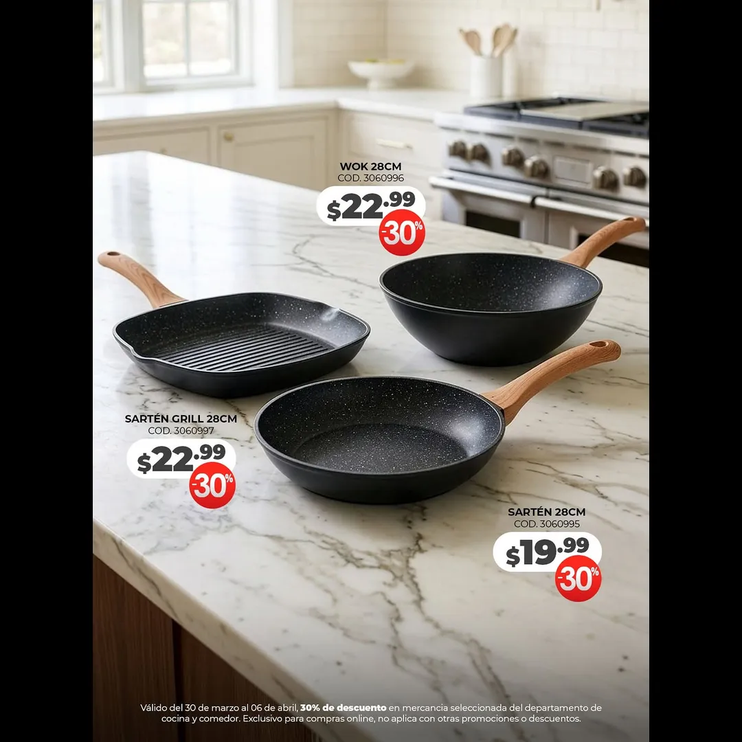 Promoción válida del 30 de marzo al 06 de abril. Aplica en mercancía seleccionada de cocina y comedor. Exclusivo en compras online. No aplica con otras promociones o descuentos.