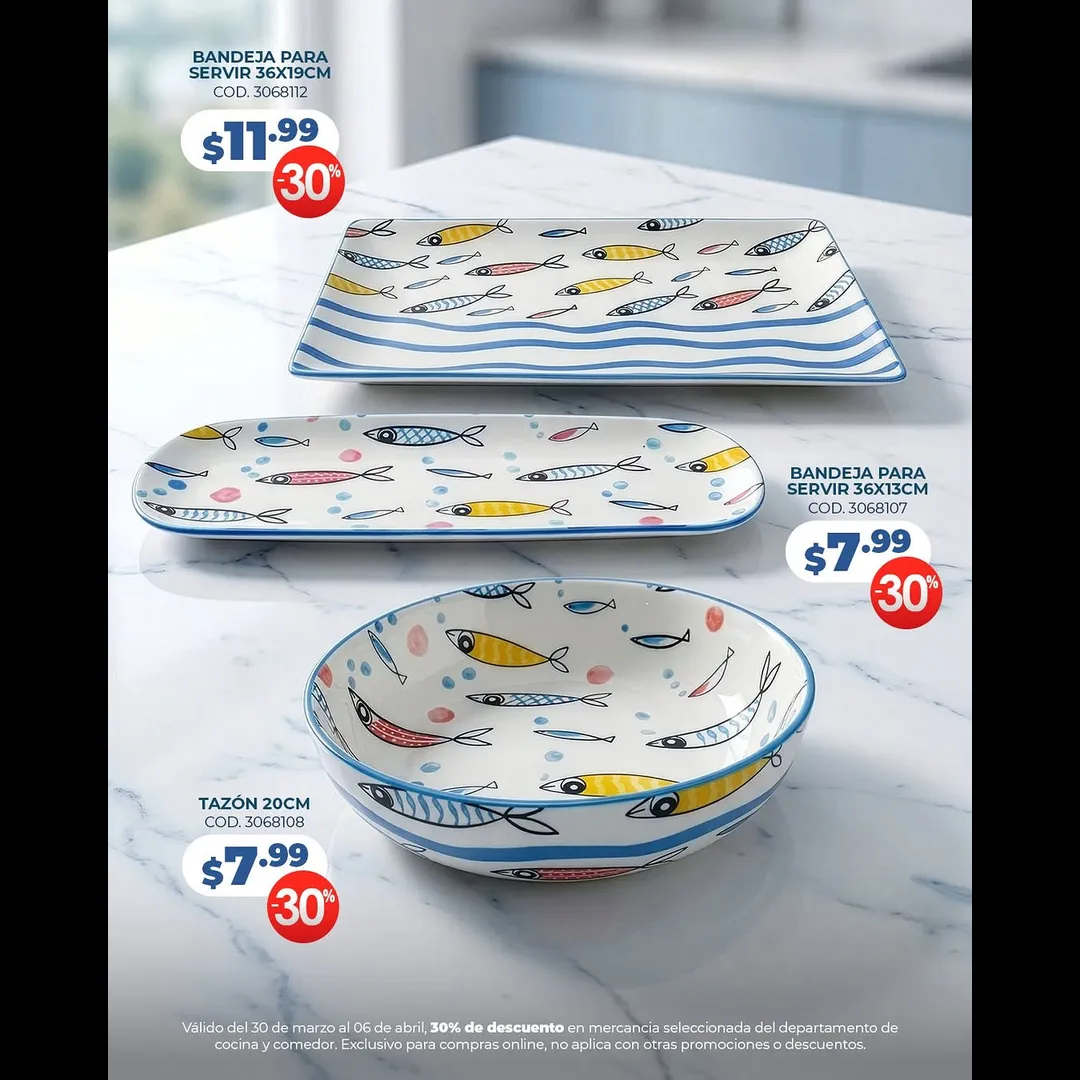 Promoción válida del 30 de marzo al 06 de abril. Aplica en mercancía seleccionada de cocina y comedor. Exclusivo en compras online. No aplica con otras promociones o descuentos.