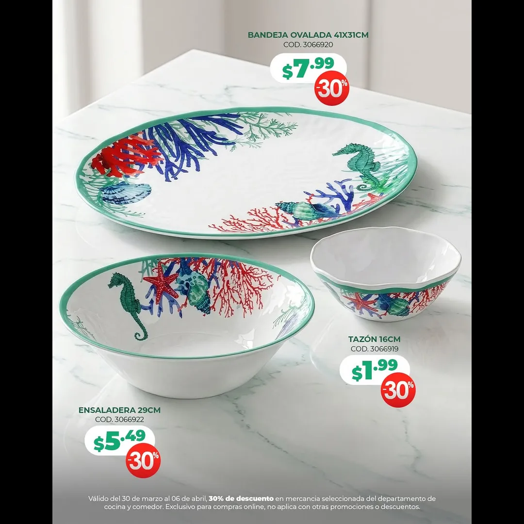 Promoción válida del 30 de marzo al 06 de abril. Aplica en mercancía seleccionada de cocina y comedor. Exclusivo en compras online. No aplica con otras promociones o descuentos.