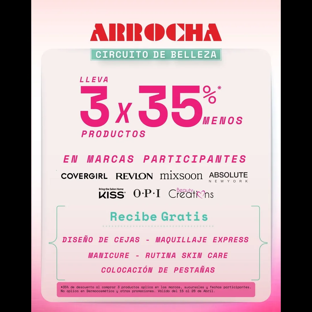 Aprovecha un 35% de descuento al llevar 3 productos de Covergirl, Revlon, Mixsoon, Absolute New York, Kiss, O.P.I y Beauty Creations 🛍️