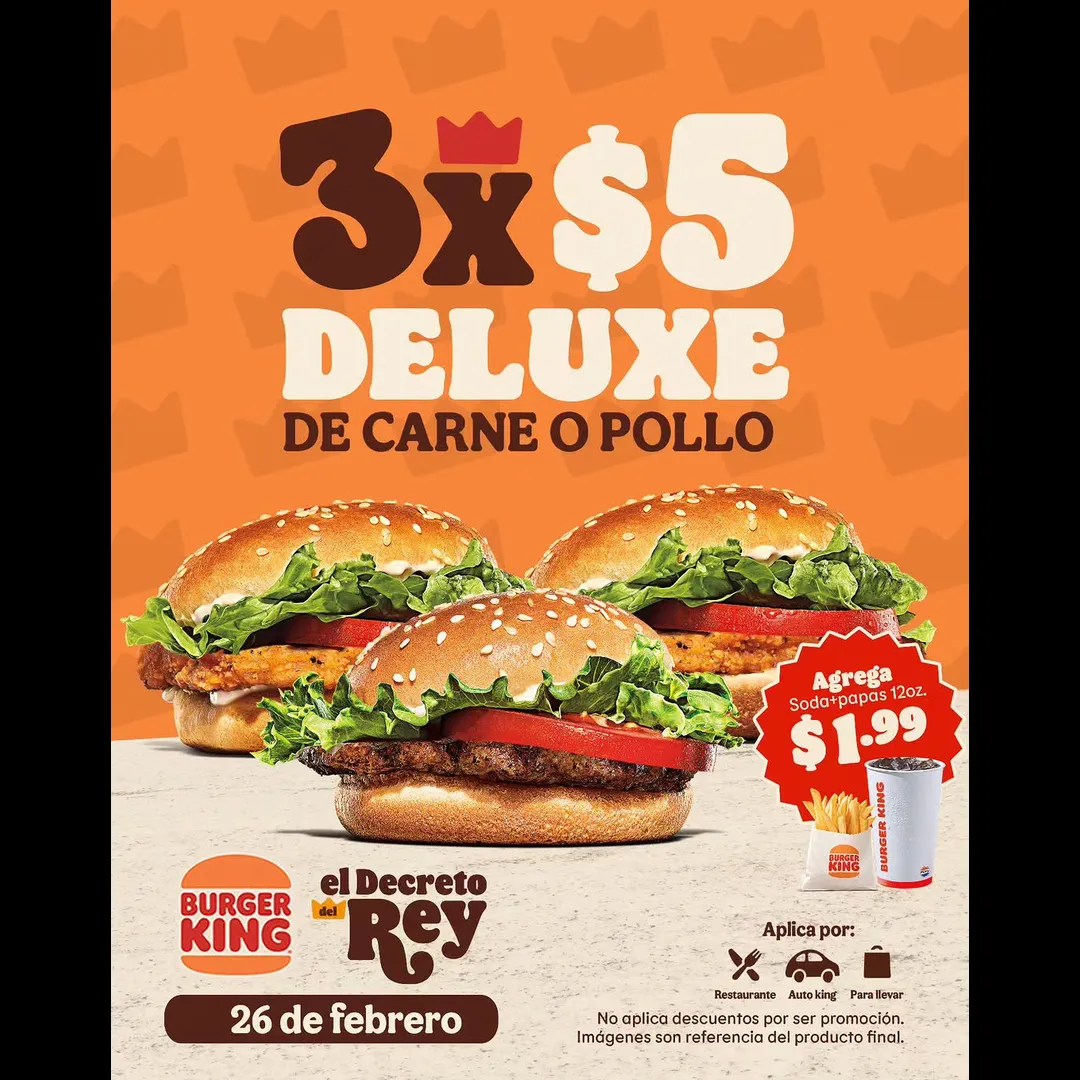El anuncio publicado pertenece a @burgerkingpa, pueden hacer cambios sin previo aviso, consultar con la cuenta la validez de la misma.