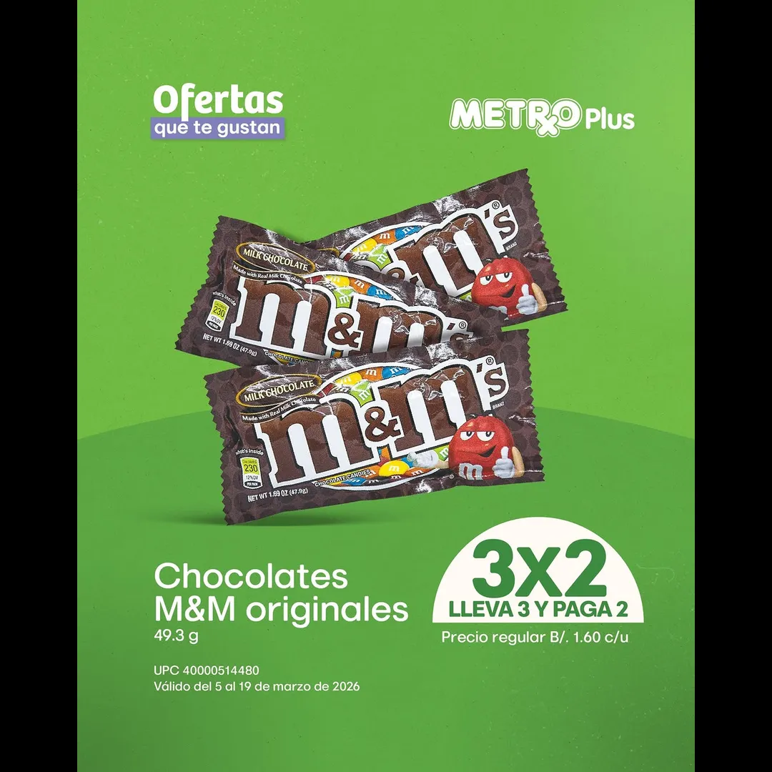 3×2 en Chocolates M&M a B/. 1.60 c/u