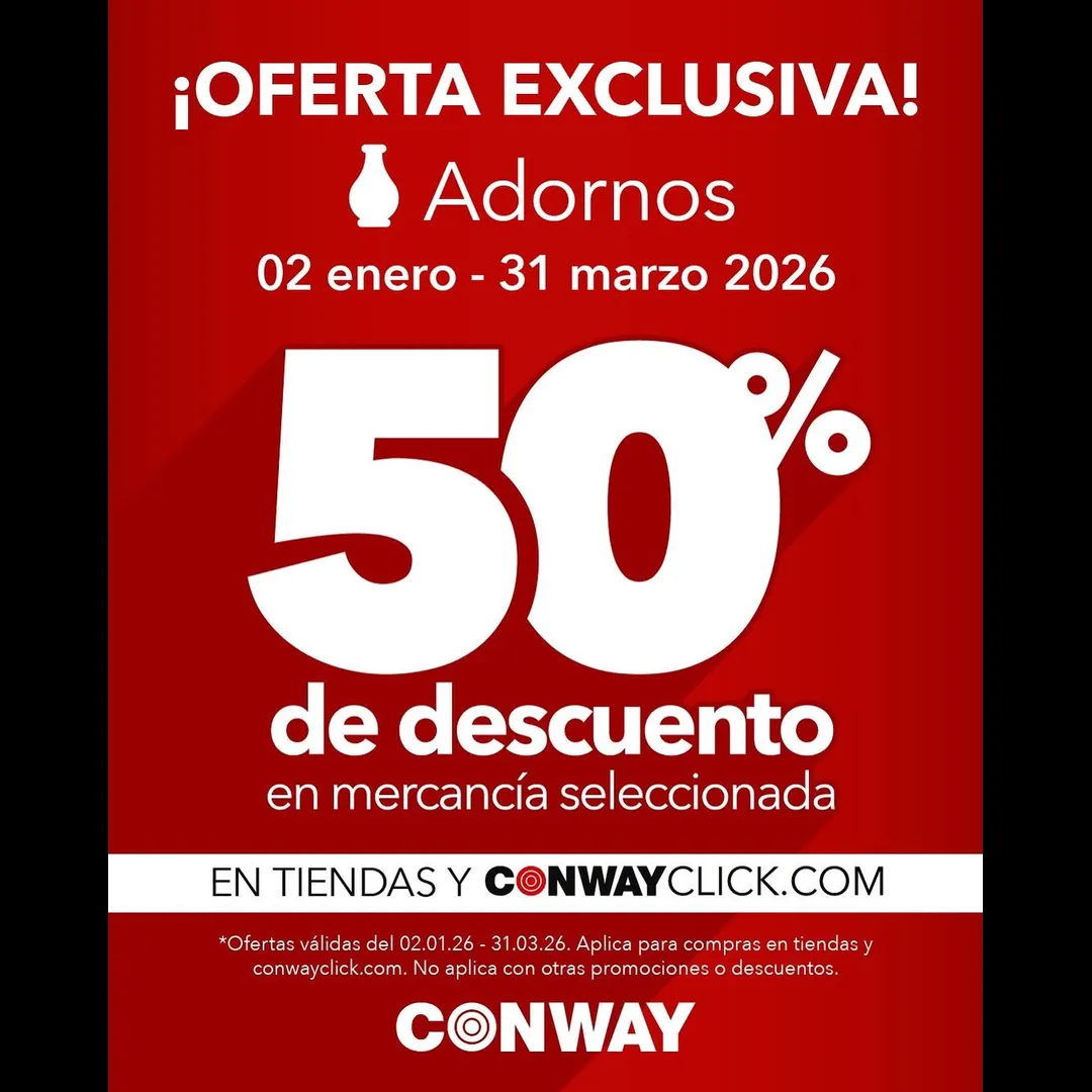 *Ofertas válidas del 02.01.26 al 31.03.26. Aplica para compras en tiendas y conwayclick.com. No aplica con otras promociones o descuentos.*