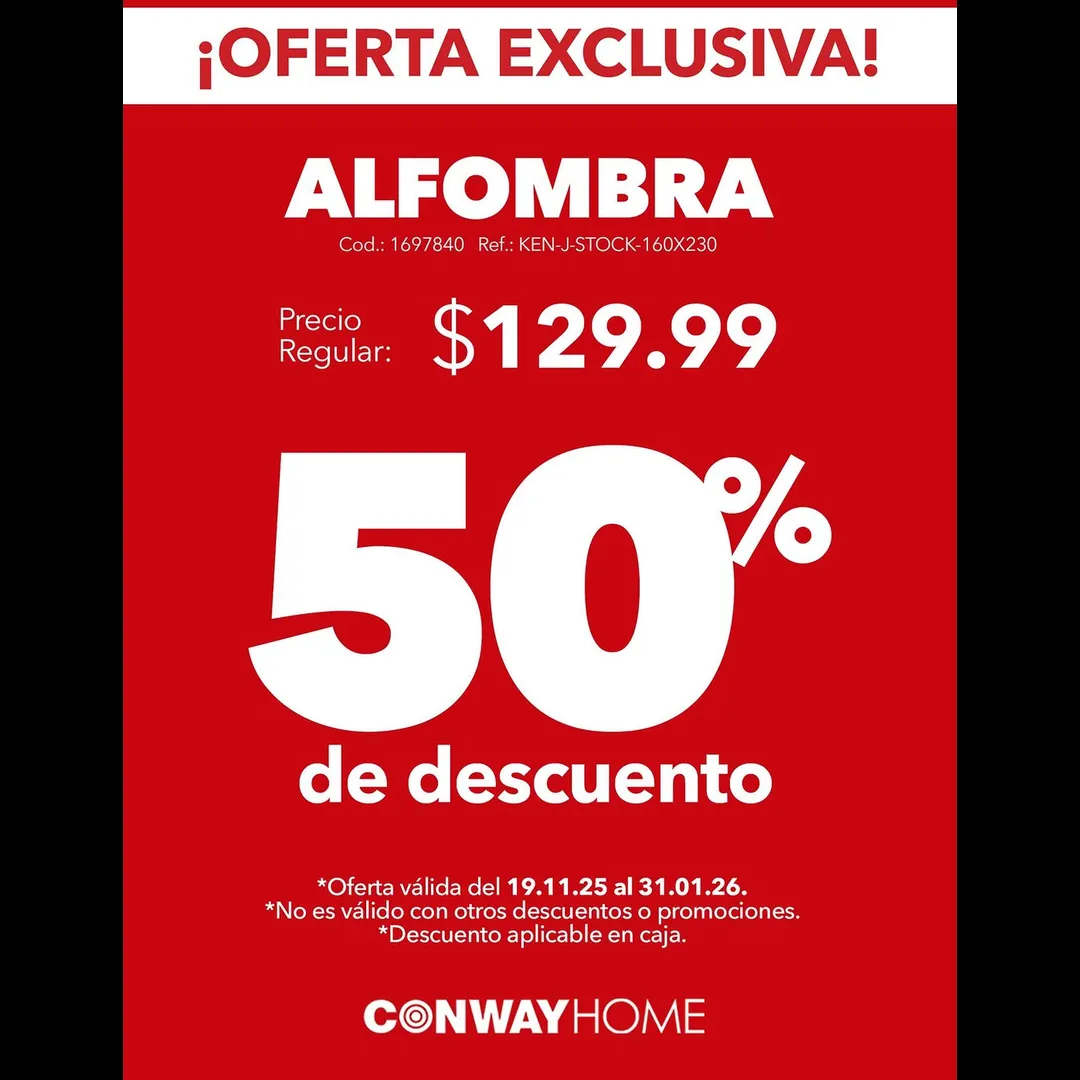 50% de descuento en alfombra $129.99