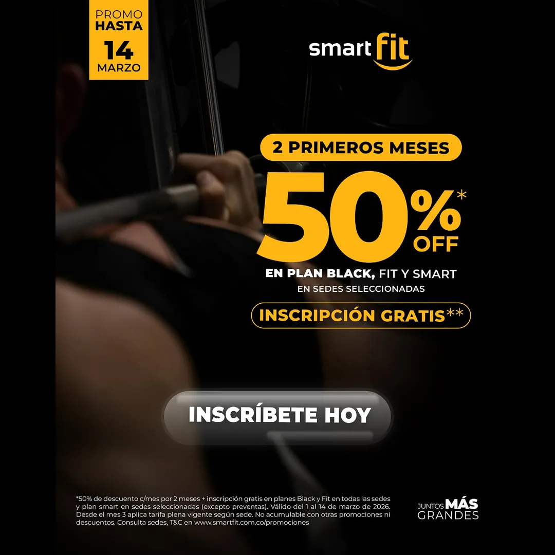 Llévate 50% OFF en tus 2 primeros meses en planes Black, Fit y Smart, más inscripción GRATIS.