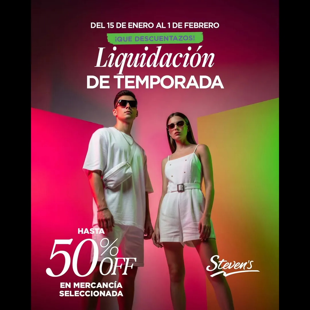Aprovecha la Liquidación por Temporada de Steven’s y renueva tu clóset, el de tu esposo, tus niños y tu hogar con TODO lo que encontrarás en nuestras tiendas.