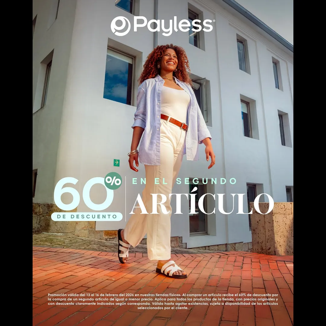 Promoción válida del 13 al 16 de febrero del 2026 en nuestras tiendas físicas. Al comprar un artículo recibe el 60% de descuento por la compra de un segundo artículo de igual o menor precio. Aplica para todos los productos de la tienda, con precios originales y con descuento claramente indicados según corresponda. Válida hasta agotar existencias, sujeta a disponibilidad de los artículos seleccionados por el cliente.