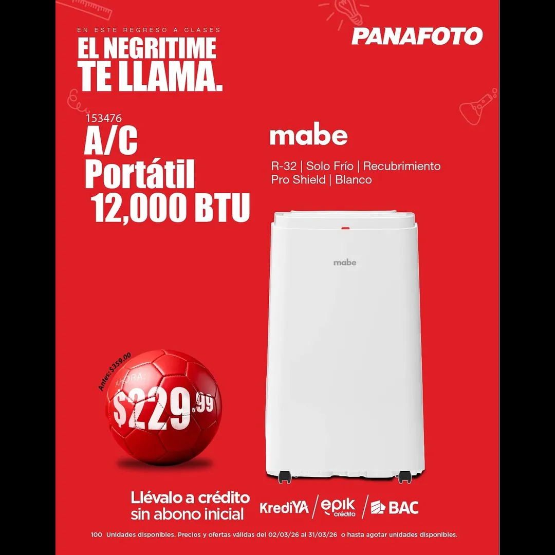 Aire Acondicionado Portátil Mabe 12,000 BTU | 100 und.