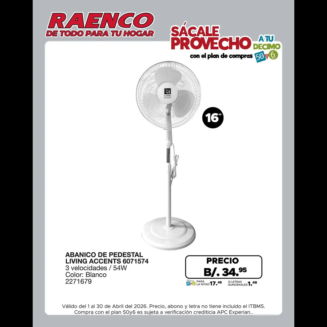 Abanico de pedestal a B/. 46.95