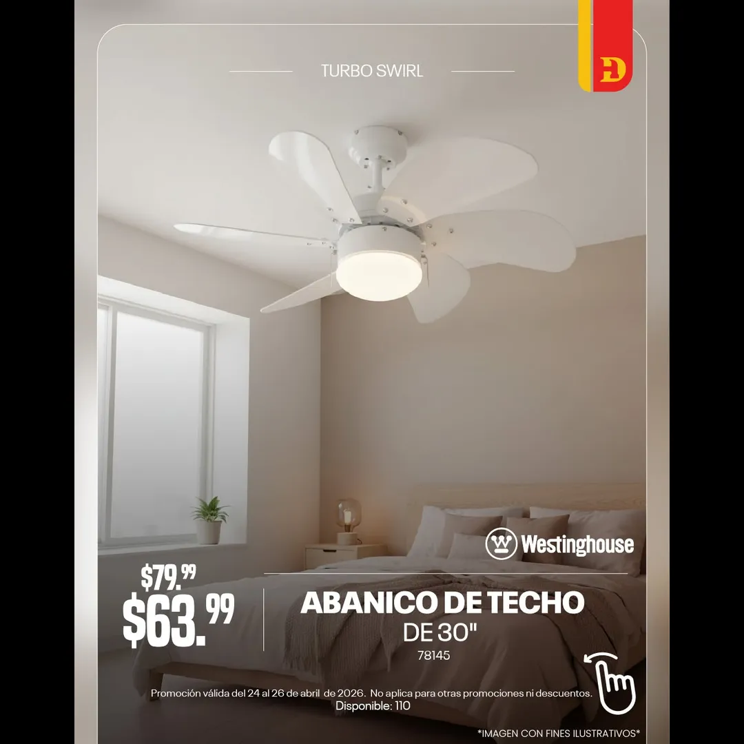 Dale un giro fresco a tu hogar 🌀✨Aprovecha 20% de descuento en abanicos de techo y renueva tus espacios con estilo y confort. 🌬️