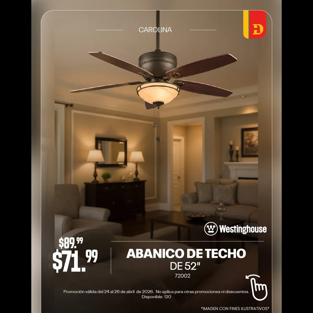 Dale un giro fresco a tu hogar 🌀✨Aprovecha 20% de descuento en abanicos de techo y renueva tus espacios con estilo y confort. 🌬️