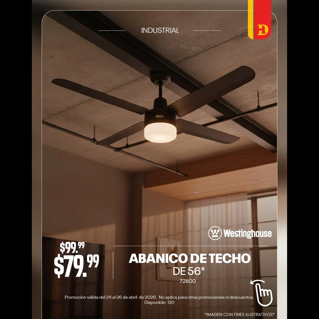 Dale un giro fresco a tu hogar 🌀✨Aprovecha 20% de descuento en abanicos de techo y renueva tus espacios con estilo y confort. 🌬️