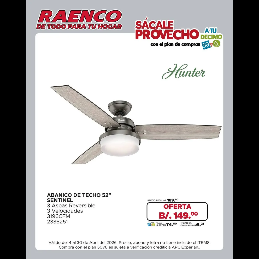 Equipa tu hogar con nuestros abanicos de techos Hunter, versátiles y funcional para cada rincón de tu hogar.
