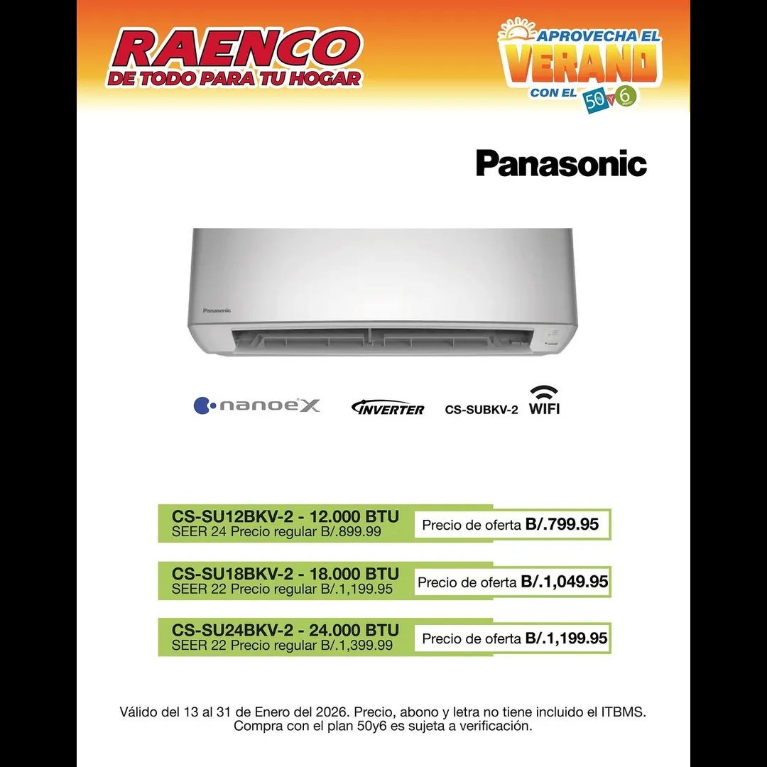 Potencia Máxima: ¿Espacios grandes? Llévate el de 36,000 BTU a un precio especial de oferta de B/. 1,699.95. + 7%