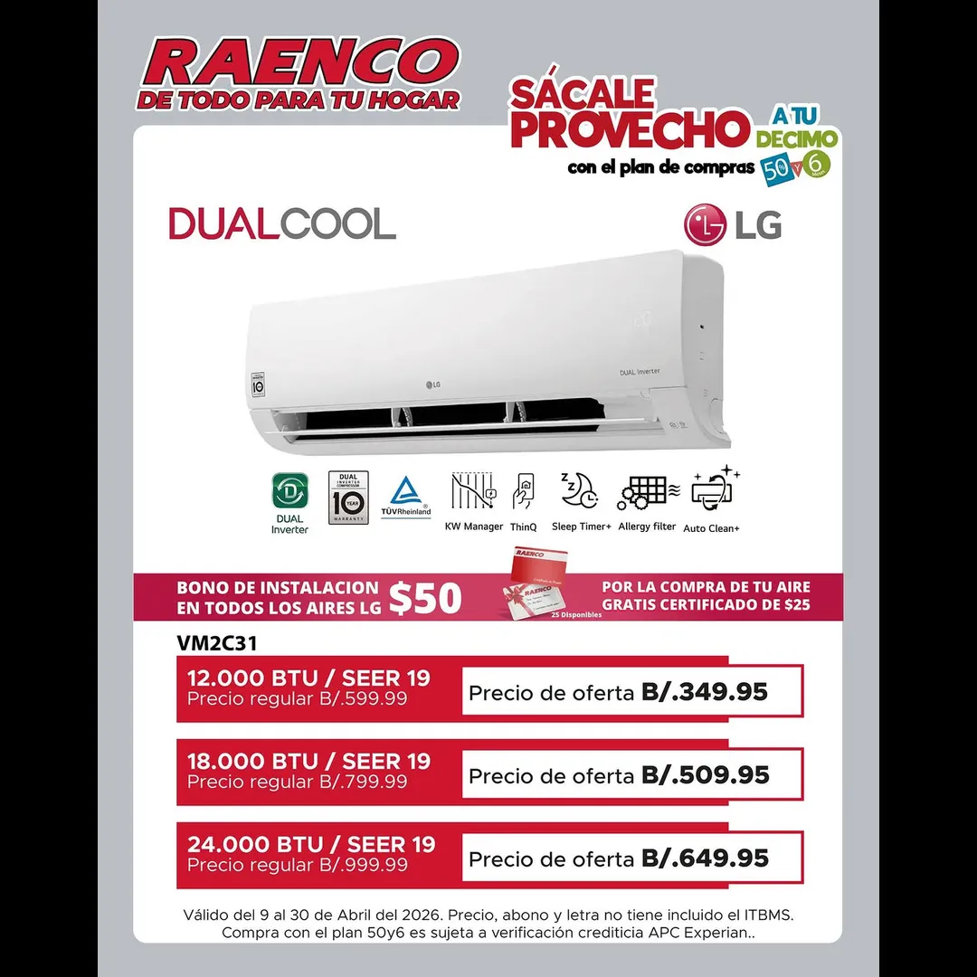 Ahorra, con nuestro plan 50y6 y sácale provecho a tu décimo. Disfruta del máximo confort! ❄️ Descubre la eficiencia de nuestros aires acondicionados y vive un verano fresco y placentero.