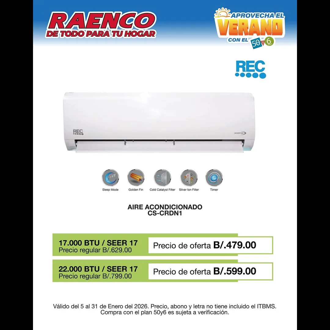 17,000 BTU (SEER 17): Precio de oferta B/. 479.00.