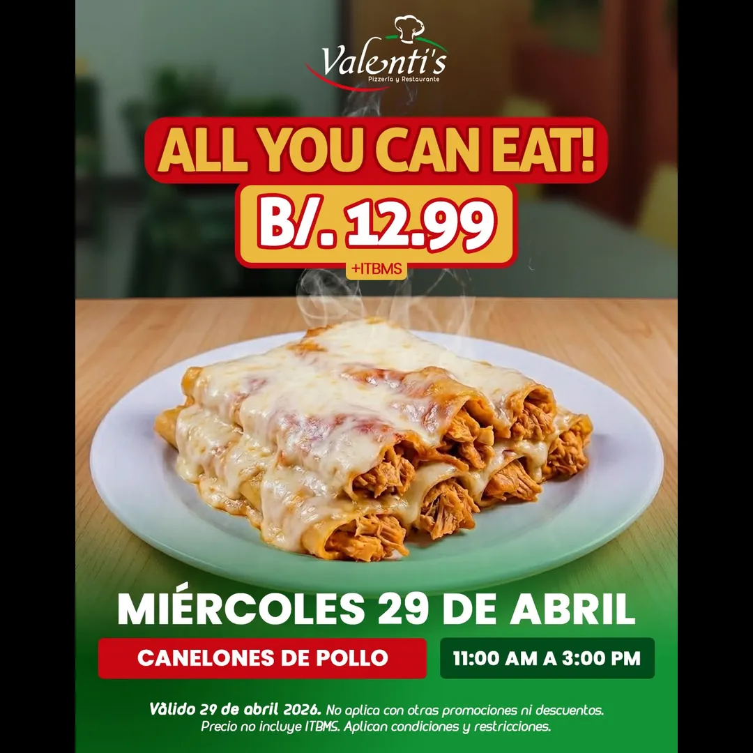 Este miércoles 29 de abril, el banquete es en Valenti’s.