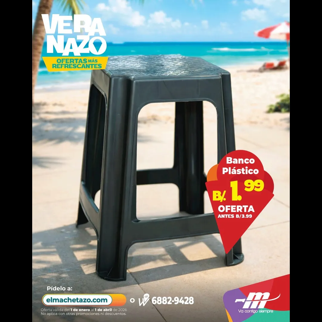 En Veranazo de El Machetazo encuentra sillas y bancos plásticos ideales para la playa, la piscina o el patio, a precios refrescantes 🌴🪑