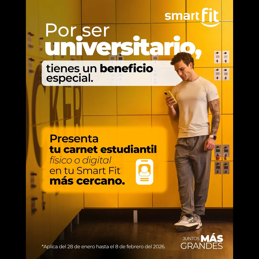 Porque en Smart Fit sabemos lo que implica ser universitario. Tenemos un beneficio especial para ti.