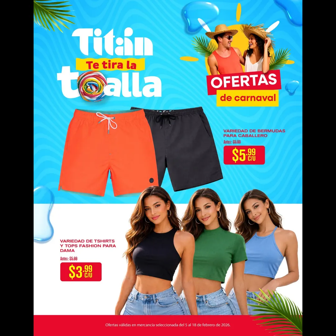 ¡En este carnaval, las mejores ofertas las encuentras en Titán! 💧🎉