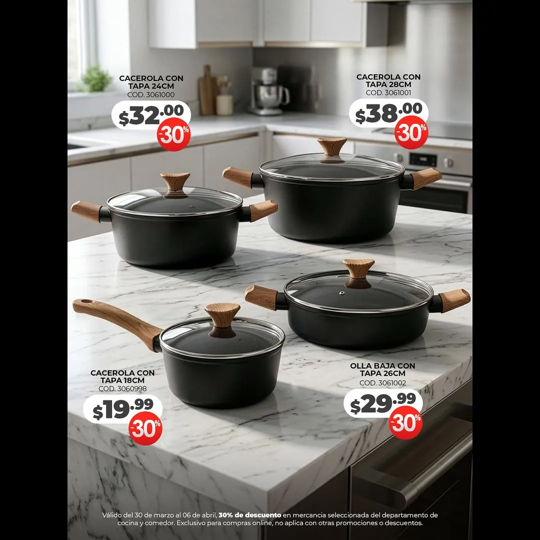 Promoción válida del 30 de marzo al 06 de abril. Aplica en mercancía seleccionada de cocina y comedor. Exclusivo en compras online. No aplica con otras promociones o descuentos.