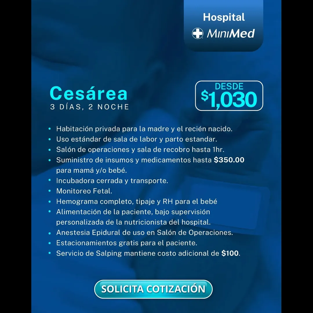 • Cesárea 👉 Desde $1,030 (3 días / 2 noches)