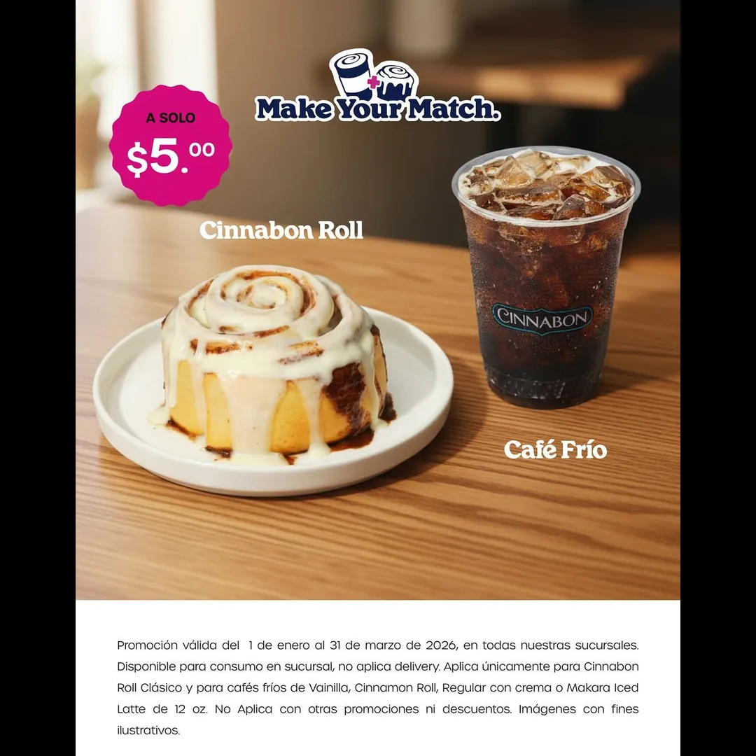 Elige tu bebida, súmalo a un Cinnabon Roll y haz el match perfecto para tu momento del día.✨