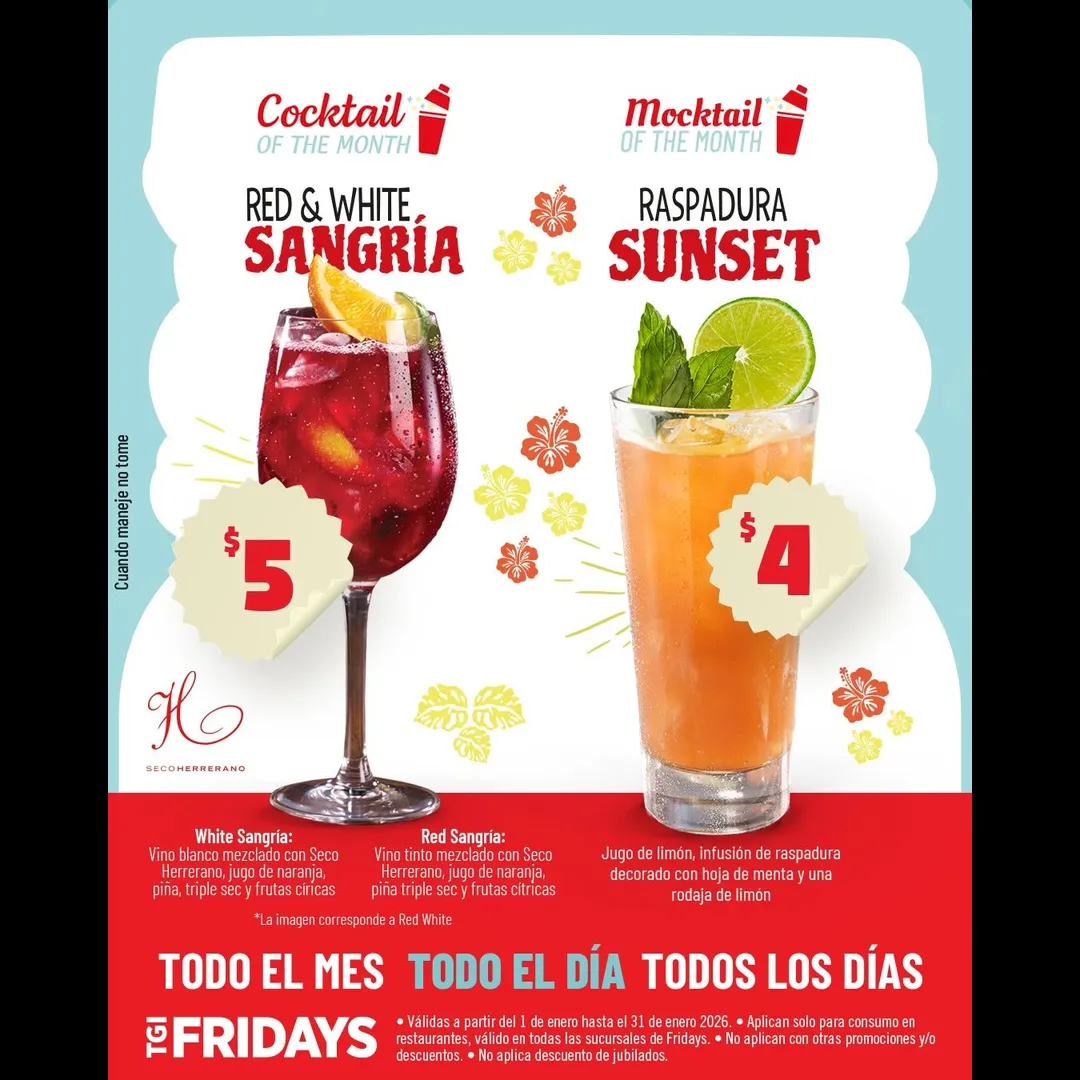 El verano ya llegó y se sirve en vaso frío. 🍹✨Este mes en Fridays brindamos con Red & White Sangría y el mocktail Raspadura Sunset.