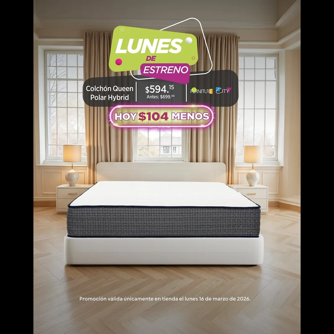 Podrás llevarte el Colchón Queen Polar Hybrid con $104 menos y empezar la semana renovando tu descanso. 🛏️🌙