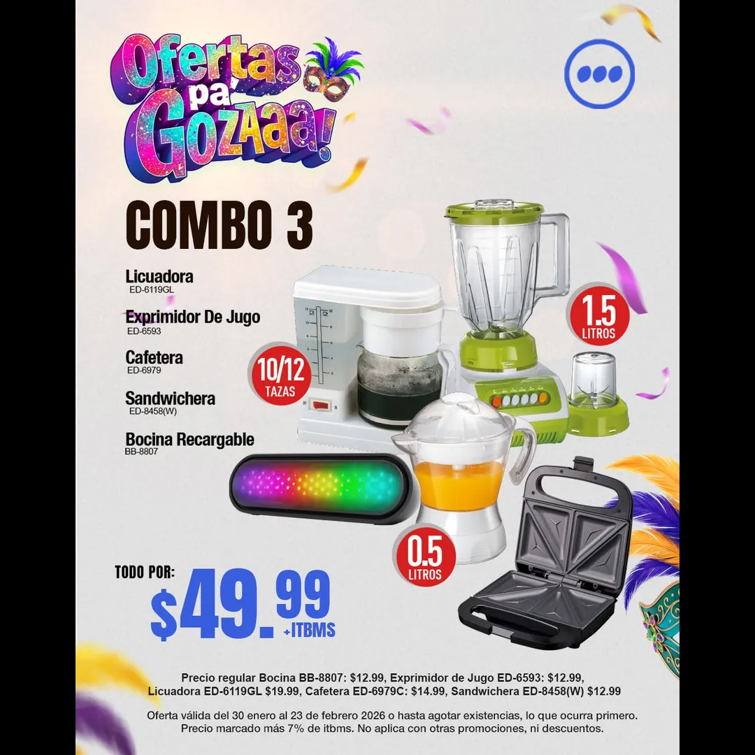 Promoción válida del 30 de enero al 23 de febrero 2026 o hasta agotar unidades disponibles; No aplica con otras ofertas, promociones, ni descuentos.