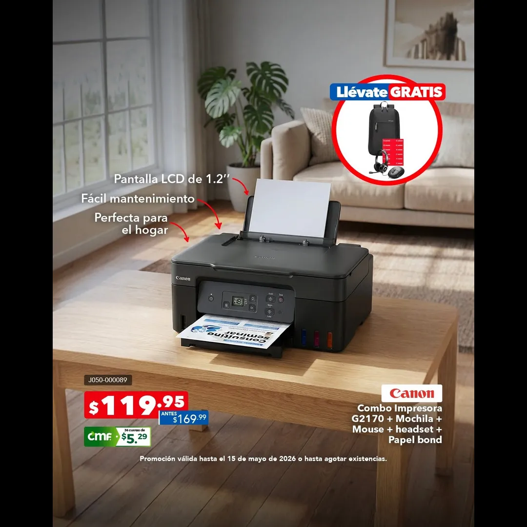 Combo gratis con compra de impresora Canon – ¡Sin abono!