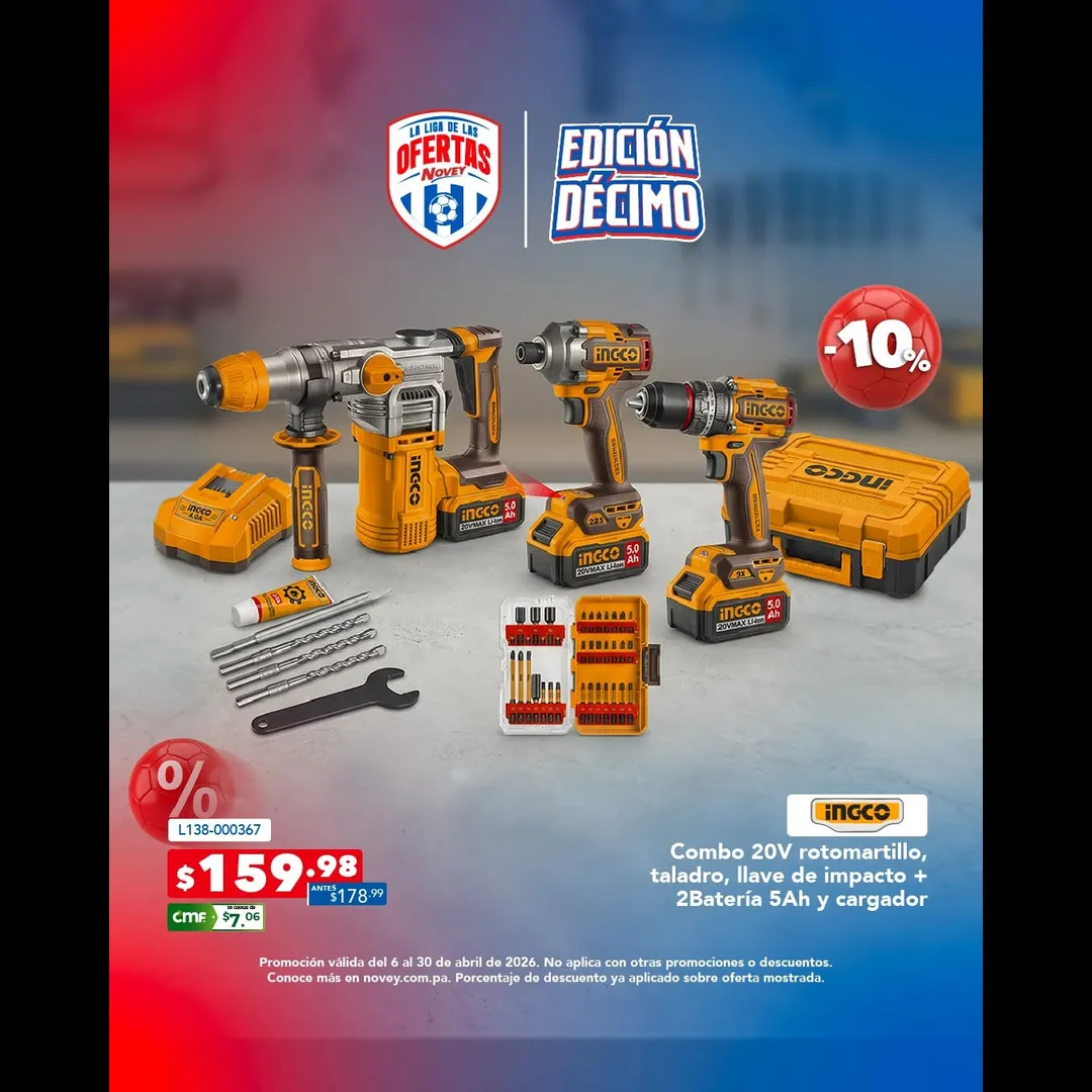 Promoción válida del 6 al 30 de abril de 2026. No aplica con otras ofertas, promociones o descuentos. Conoce más en novey.com.pa