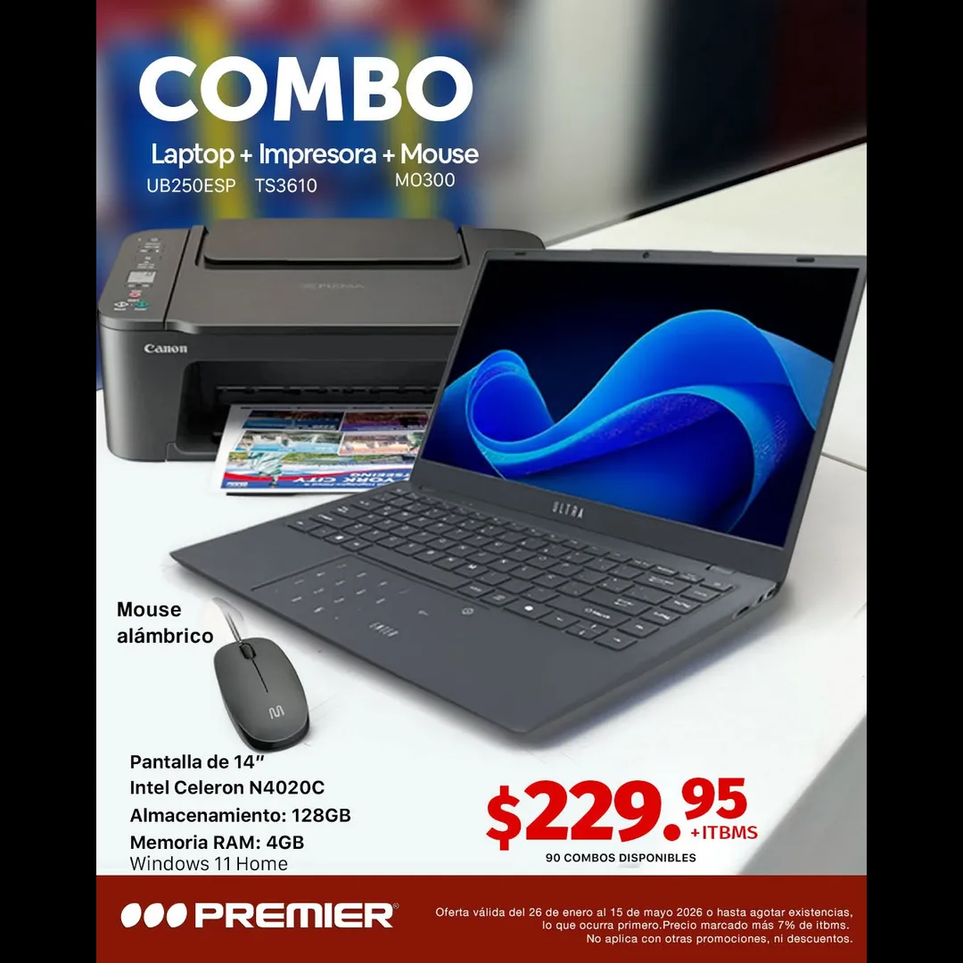 Combo Laptop + Impresora + Mouse por $229.95